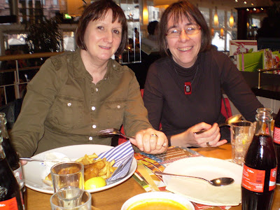 Vi mammor gick till en restaurang vid vattnet där Elaine upplyste mig om att deltagarna i engelska The Apprentice (det enda TV-program vi sett hittills på engelsk TV, vi måste ändra på det!), var under sitt utlandsuppdrag. Elaines familj har också följt programmet (och förhoppningsvis missade de inte de tre sista avsnitten som vi gjorde, TYPISKT!), så det var väldigt kul att de åkte från London till just Hamburg. Det var ett trevligt ställe med jättegod mat.